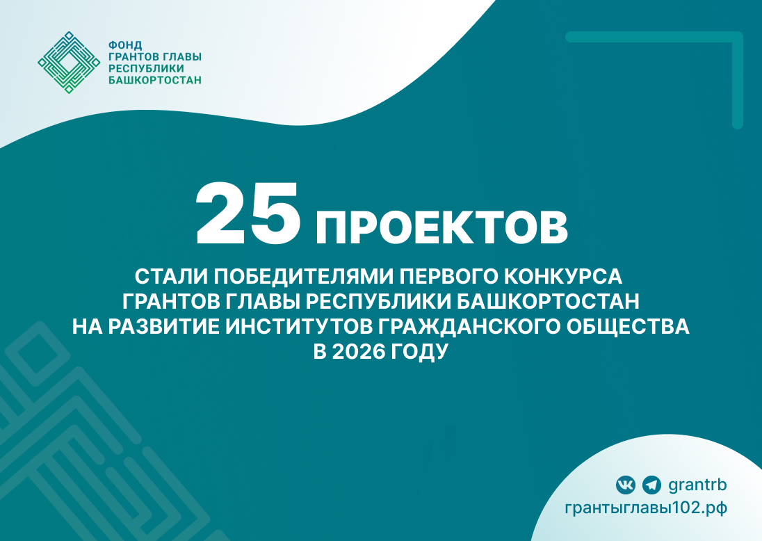 Реализация проектов победителей начнется не ранее 1 июня 2026 года. С полным перечнем победителей конкурса можно ознакомиться на сайте https://грантыглавы102.рф.